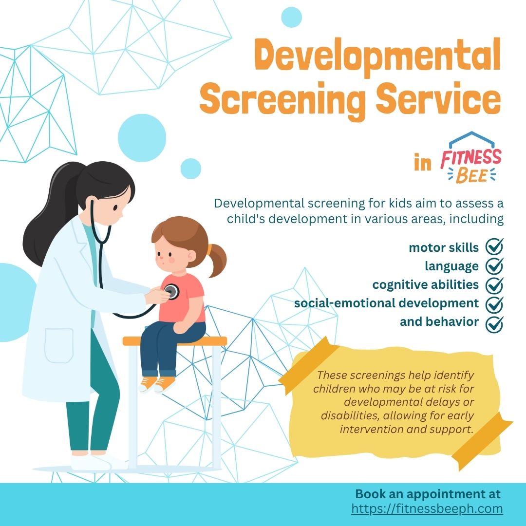 Developmental screening aims to assess a child’s development in various areas, including motor skills, language, cognitive abilities, social-emotional development, and behavior. These screenings help identify children who may be at risk for developmental delays or disabilities, allowing for early intervention and support as well as Autism screening for children between 16 to 30 months. This will be done by our pediatrician Dr. Maxine Adriano on a by-appointment basis at Fitness Bee.